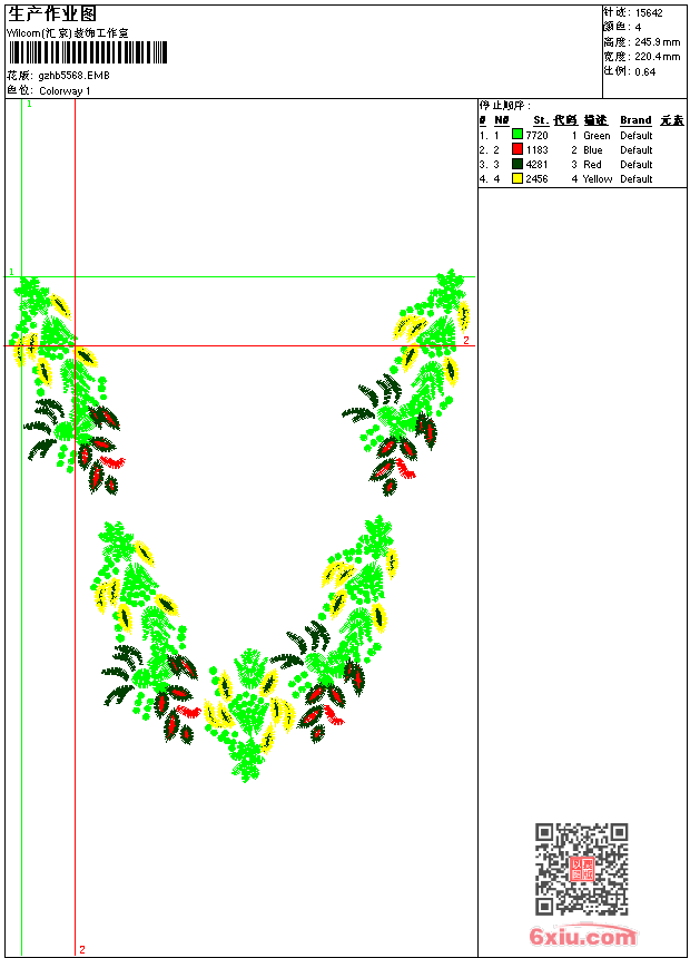 葡萄领花 emb花版参数: 大小:130.00 KB / 尺寸:220*246[毫米] / 针数:15642针 / 线色:4 / 格式:emb / 版本:9 版带文件需绣花软件方可打开,可配色打印导出各种格式或直接上机绣。如无绣花软件可下载1:1模拟效果图。 PNG图片信息:大小:0.4(MB) /图宽*高:834x931(像素) emb下载 1:1图下载 关闭 相关花版: australia国旗 轮状花 皮带条花 十字绣领 马赛克条 雪花曲线 绳绣裙摆 小人 经典花 波浪单针麦穗水滴花朵 它它米小熊 曲线包针花朵花边 锁链状后幅男 网布花边 单针玫瑰花 圆圈花朵条码 单针轮廓花 旋转单针叶子抽象 小熊开汽车 蝴蝶 后袋水草抽象 简单花 三角形抽象乱针 简单花 抽象单针叶 前中对称领花仿水溶 后袋鸵鸟 米奇和哈巴狗 曲线仿绳绣 金鱼水草花传统吉祥