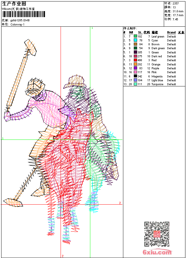 骑马保罗polo emb花版参数: 大小:45.50 KB / 尺寸:18*31[毫米] / 针数:2357针 / 线色:13 / 格式:emb / 版本:9 版带文件需绣花软件方可打开,可配色打印导出各种格式或直接上机绣。如无绣花软件可下载1:1模拟效果图。 PNG图片信息:大小:0.1(MB) /图宽*高:68x118(像素) emb下载 1:1图下载 关闭 相关花版: 摩托车 变形章仔 传统抽象菊花 贴布绣小朋友 雕孔单针曲线花 传统精致对称蝴蝶 圆点方形领前中特殊效果 菱形下摆贴布花中东复杂 抽象单针花 飞鹰翅膀字母 仿水溶领花 亮片 曲线珠片 简单花 抽象单针花 格子单针似蝴蝶前中 亮片 袋口珠片 对称曲线抽象 包针桃心领 简单稀梳花 麦穗字母章仔 链状圆点条状 狐狸 圆点花朵U形领 骷髅头抽象 曲线链状条 锁链简单花 简单对称小花领 抽象曲线串珠星点 渐变字母 商品条码