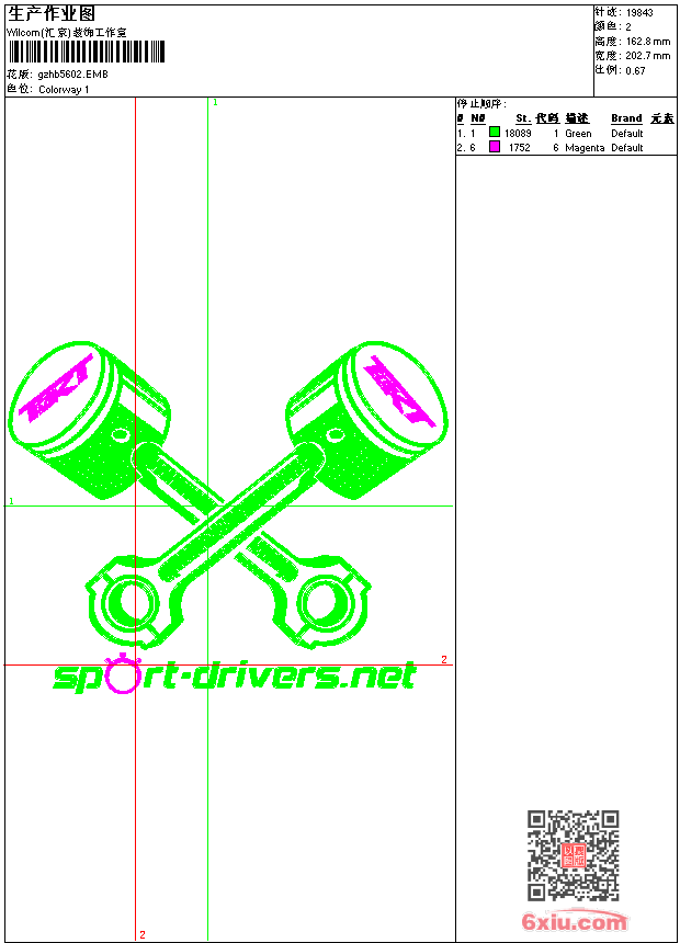 活塞 emb花版参数: 大小:87.50 KB / 尺寸:203*163[毫米] / 针数:19843针 / 线色:2 / 格式:emb / 版本:9 版带文件需绣花软件方可打开,可配色打印导出各种格式或直接上机绣。如无绣花软件可下载1:1模拟效果图。 PNG图片信息:大小:0.3(MB) /图宽*高:767x616(像素) emb下载 1:1图下载 关闭 相关花版: 传统复杂花裙摆 水滴抽象条 抽象童装花 字母集 熊 单针大花 皮带条 卡通 领水溶领花 领水溶领花 天鹅 虎头 毛巾绣 asutralia 轮船 虎头 章仔 骷髅 心love 章仔 章仔 鹰章仔 章仔 章仔 奥特曼 皇宫 章仔 D&G 章仔 italia章仔