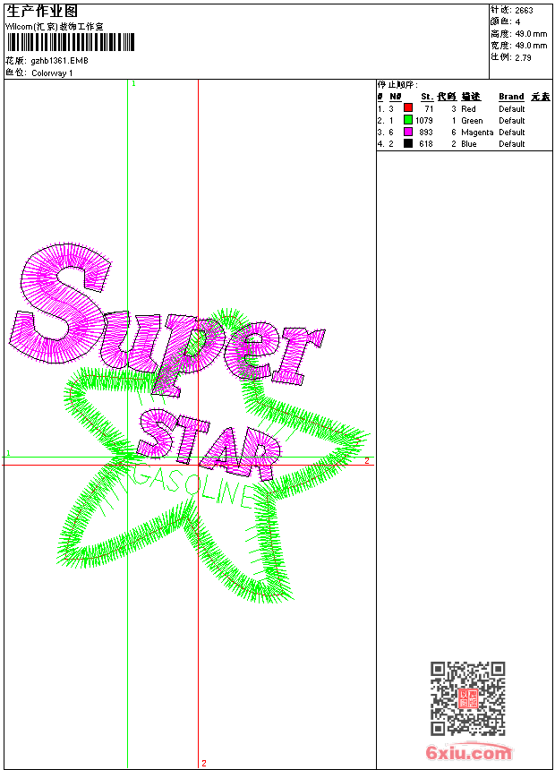 super star emb花版参数: 大小:37.50 KB / 尺寸:49*49[毫米] / 针数:2663针 / 线色:4 / 格式:emb / 版本:9 版带文件需绣花软件方可打开,可配色打印导出各种格式或直接上机绣。如无绣花软件可下载1:1模拟效果图。 PNG图片信息:大小:0.1(MB) /图宽*高:186x186(像素) emb下载 1:1图下载 收藏本图 关闭 相关花版: 字母 鬼脸 章仔 毛巾绣字母 亮片 珠片少年 章仔italia 心形 章仔 骑马章仔 章仔 王冠 骷髅 字母 奥特曼 章仔 章仔 骷髅先生 章仔 乱草 骷髅海盗 足球章仔 经典传统牡丹花 简单层次花 国旗皇冠章仔 简单花 包针条横条状领前中花 展翅飞鹰章仔 抽象玫瑰花领 叶子小花朵 兰花腰带