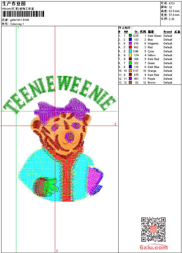 熊大 emb花版参数: 大小:62.00 KB / 尺寸:57*64[毫米] / 针数:6731针 / 线色:12 / 格式:emb / 版本:9 版带文件需绣花软件方可打开,可配色打印导出各种格式或直接上机绣。如无绣花软件可下载1:1模拟效果图。 PNG图片信息:大小:0.1(MB) /图宽*高:216x241(像素) emb下载 1:1图下载 关闭 相关花版: 亮片 珠片字母 准星 章仔 章仔 KIDS 章仔 字母 翅膀章仔 亮片 凤凰珠片 传统牡丹花 传统花蝴蝶 经典花 抽象周线针花 毛巾绣字母fashion 满胸小花 仿提花 字母 飞鹰 王冠字母 抽象蝴蝶 间格条 字母 镂空领 猴 领激光 蓝妹妹 简单叶 狮子章仔 王冠 章仔