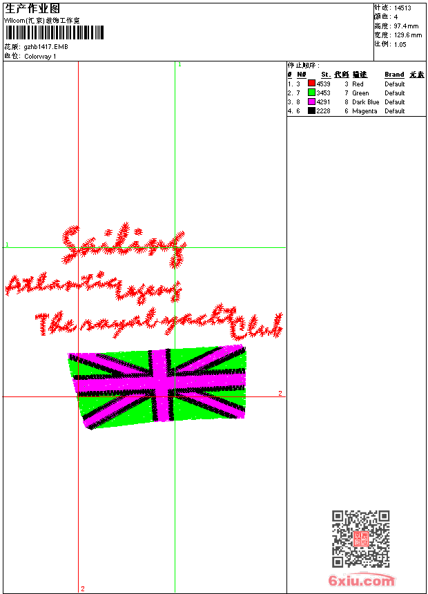 米字旗 emb花版参数: 大小:71.50 KB / 尺寸:130*97[毫米] / 针数:14513针 / 线色:4 / 格式:emb / 版本:9 版带文件需绣花软件方可打开,可配色打印导出各种格式或直接上机绣。如无绣花软件可下载1:1模拟效果图。 PNG图片信息:大小:0.1(MB) /图宽*高:491x369(像素) emb下载 1:1图下载 关闭 相关花版: 骑马章仔 章仔 章仔 字母 熊大 亮片 珠片字母 准星 章仔 章仔 KIDS 章仔 字母 翅膀章仔 亮片 凤凰珠片 传统牡丹花 传统花蝴蝶 经典花 抽象周线针花 毛巾绣字母fashion 满胸小花 仿提花 字母 飞鹰 王冠字母 抽象蝴蝶 间格条 字母 镂空领 猴 领激光