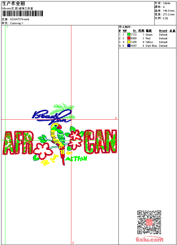 鹦鹉 emb花版参数: 大小:166.00 KB / 尺寸:273*150[毫米] / 针数:19844针 / 线色:4 / 格式:emb / 版本:9 版带文件需绣花软件方可打开,可配色打印导出各种格式或直接上机绣。如无绣花软件可下载1:1模拟效果图。 PNG图片信息:大小:0.5(MB) /图宽*高:1034x568(像素) emb下载 1:1图下载 关闭 相关花版: 圆点包针曲线家纺 猫头鹰 经典牡丹花 曲线稀梳包针 抽象花 豹子章仔 传统吉祥圆圈条 滑板女孩 瓜状叶子 曲线包针字母 单针轮廓抽象花 兔子 曲线单针 大力水手 简单花 下摆曲线叶子 荷花 曲线单针 国旗章仔 章仔鹰 字母 章仔 海盗 鹰 章仔 章仔angel italia章仔 射击章仔 章仔 章仔