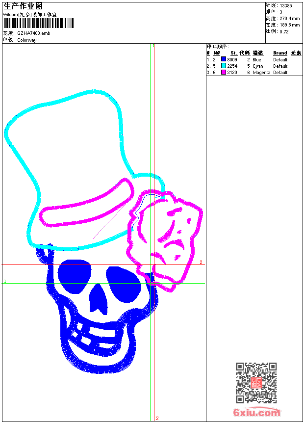 戴帽子骷髅头 emb花版参数: 大小:75.00 KB / 尺寸:189*270[毫米] / 针数:13385针 / 线色:3 / 格式:emb / 版本:9 版带文件需绣花软件方可打开,可配色打印导出各种格式或直接上机绣。如无绣花软件可下载1:1模拟效果图。 PNG图片信息:大小:0.3(MB) /图宽*高:717x1023(像素) emb下载 1:1图下载 关闭 相关花版: 网布花边 巴黎铁塔玫瑰花 字母 传统牡丹花 字母草莓 皇冠 孔雀开屏 三角针 经典花 贴布字母鹰 米字单针 戴眼镜大嘴巴骷髅 字母 后袋字母 章仔 章仔 章仔 章仔 YES 抽象葫芦 章仔 锚 骑马章仔 骑马章仔 章仔 章仔 字母 高帽 ZAP字母 骷髅