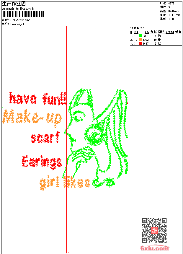 美女头像 emb花版参数: 大小:79.00 KB / 尺寸:104*85[毫米] / 针数:6272针 / 线色:3 / 格式:emb / 版本:9 版带文件需绣花软件方可打开,可配色打印导出各种格式或直接上机绣。如无绣花软件可下载1:1模拟效果图。 PNG图片信息:大小:0.1(MB) /图宽*高:395x321(像素) emb下载 1:1图下载 关闭 相关花版: 单针人像字母 皇冠马章仔 抽象花 经典前中花 经典下摆大裙花 美女抽象 麦穗字母章仔 包针小菊花领 鹰字母 小熊贴布童 菱角抽象叶 天鹅 方形前中 企鹅贴布 小松鼠字母 简单花 包针云朵抽象 简单包针分割 鲤鱼吉祥 米老鼠女香水 圆点花 飞鸟 小猫 字母 麦穗字母章仔 字母章仔 翅膀章仔 圆圈菱形格子领 鹰字母 米老鼠女