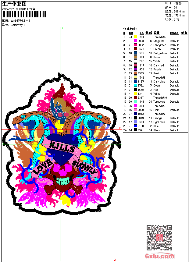 骷髅蛇章仔 emb花版参数: 大小:248.00 KB / 尺寸:173*209[毫米] / 针数:45950针 / 线色:24 / 格式:emb / 版本:9 版带文件需绣花软件方可打开,可配色打印导出各种格式或直接上机绣。如无绣花软件可下载1:1模拟效果图。 PNG图片信息:大小:0.7(MB) /图宽*高:654x791(像素) emb下载 1:1图下载 关闭 相关花版: 老虎章仔 数字25 章仔 章仔 章仔 章仔 鹰章仔 NBA 骷髅 字母 字母 章仔 章仔 章仔 章仔熊 骷髅爱心 A 鸟章仔 章仔 CLASSIC 章仔 鳄鱼 章仔 王冠 亮片 珠片章仔 仿水溶下摆大花复杂 亮片 下摆珠片大花水溶网布 亮片 网布珠片 帽子女 叶子