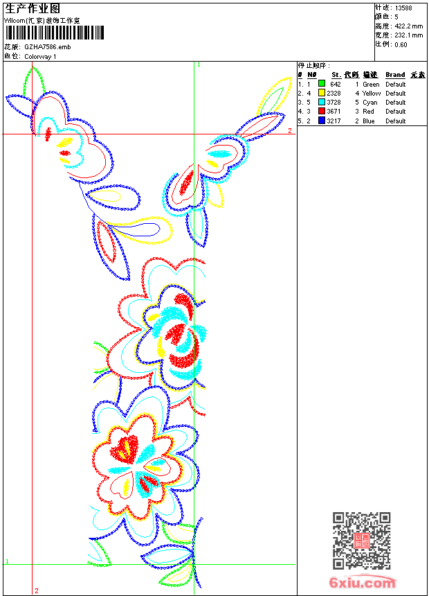 三角针抽象花 emb花版参数: 大小:258.50 KB / 尺寸:232*422[毫米] / 针数:13588针 / 线色:5 / 格式:emb / 版本:9 版带文件需绣花软件方可打开,可配色打印导出各种格式或直接上机绣。如无绣花软件可下载1:1模拟效果图。 PNG图片信息:大小:0.4(MB) /图宽*高:878x1598(像素) emb下载 1:1图下载 收藏本图 关闭 相关花版: 狮子 后袋曲线 字母白雪公主抽象 抽象阴影 五角星衣下角 似葡萄叶珠片条码 字母 腰条 单针格子领 传统窗花后幅 小女孩吃面条 字母章仔 单针抽象狮子头 字母章仔 单针太阳花前幅中 五角星它它米 小兔笑脸 曲线包针 曲线勾状叶 亮片 机器小狗珠片 后袋小狗 简单牡丹花 格子花 简单花 骑士章仔 简单花 云朵蛇形前中花 后袋字母 鹰皇冠章仔 亮片 吉祥窗花珠片