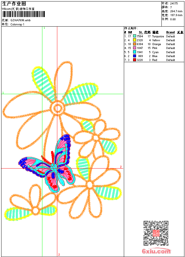 蝴蝶花朵 emb花版参数: 大小:151.50 KB / 尺寸:198*265[毫米] / 针数:24175针 / 线色:7 / 格式:emb / 版本:9 版带文件需绣花软件方可打开,可配色打印导出各种格式或直接上机绣。如无绣花软件可下载1:1模拟效果图。 PNG图片信息:大小:0.6(MB) /图宽*高:749x1002(像素) emb下载 1:1图下载 关闭 相关花版: 小猫咪 传统下摆大裙花 攀登 抽象苹果字母 单针领 曲线包针 字母圆圈卡通人物 皇冠麦穗章仔 抽象女人头像 小狗后袋 字母 字母章仔 经典传统牡丹花 单针叶子抽象 曲线包针 传统单色花 字母鹰头 仿水溶领 字母 狮子字母 经典牡丹花袖子 拱形包针下摆大裙 风车人字针 仿水溶腰中 字母 V形包针花 钥匙扣 蜘蛛网 小女孩五角星 网球拍章仔