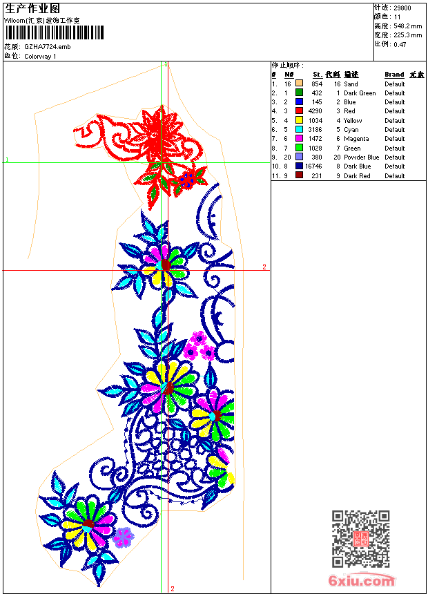 经典传统肩满花 emb花版参数: 大小:144.50 KB / 尺寸:225*548[毫米] / 针数:29800针 / 线色:11 / 格式:emb / 版本:9 版带文件需绣花软件方可打开,可配色打印导出各种格式或直接上机绣。如无绣花软件可下载1:1模拟效果图。 PNG图片信息:大小:1.1(MB) /图宽*高:853x2074(像素) emb下载 1:1图下载 关闭 相关花版: 传统吉祥圆形花 龙章仔 圆点几何图案对称 似竹节包针 格子柳树叶 民间十字绣 圆圈波浪包针花朵 小花朵条花 经典传统花 字母章仔 小熊贴布锯齿包边 亮片 苹果笑脸珠片 绕绳状包针水滴效果 抽象单针小象 曲线包针玫瑰花领 单针艺术字母 经典对称小花 单针吉祥抽象叶 蝴蝶花朵 似蝴蝶下摆 单针凤凰 简单花 心形圆圈条 网格单针圆圈花 兔子吉他 亮片 曲线三角针珠片花 亮片 珠片苹果 包针领花 蜘蛛网蝴蝶 愤怒的小鸟
