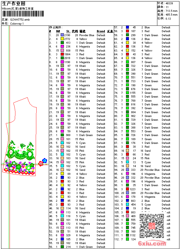 - emb花版参数: 大小:14.45 MB / 尺寸:405*713[毫米] / 针数:40339针 / 线色:11 / 格式:emb / 版本:8