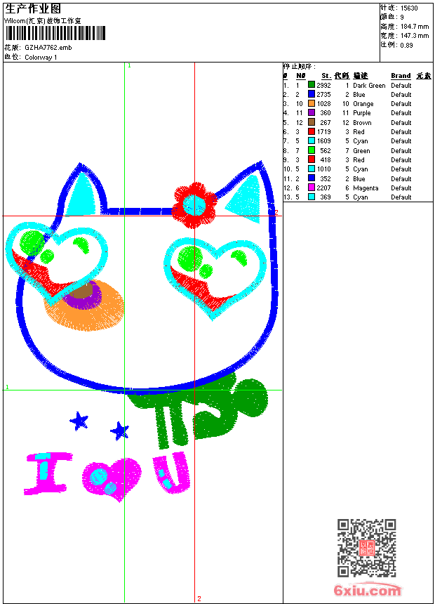 心形眼睛猫咪 emb花版参数: 大小:80.50 KB / 尺寸:147*185[毫米] / 针数:15630针 / 线色:9 / 格式:emb / 版本:9 版带文件需绣花软件方可打开,可配色打印导出各种格式或直接上机绣。如无绣花软件可下载1:1模拟效果图。 PNG图片信息:大小:0.3(MB) /图宽*高:558x699(像素) emb下载 1:1图下载 关闭 相关花版: 潜水员 镂空它它米领条花 乱针字母 蝴蝶花卉 波浪包针 蘑菇 牛四不像动物 单针圆点家纺 前幅下经典花朵 经典玫瑰花 蝴蝶 梯形后袋 经典传统肩满花 传统吉祥圆形花 龙章仔 圆点几何图案对称 似竹节包针 格子柳树叶 民间十字绣 圆圈波浪包针花朵 小花朵条花 经典传统花 字母章仔 小熊贴布锯齿包边 亮片 苹果笑脸珠片 绕绳状包针水滴效果 抽象单针小象 曲线包针玫瑰花领 单针艺术字母 经典对称小花