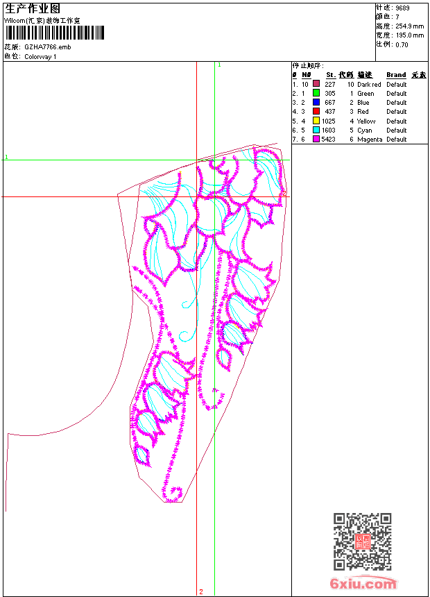 - emb花版参数: 大小:131.50 KB / 尺寸:195*255[毫米] / 针数:9689针 / 线色:7 / 格式:emb / 版本:6