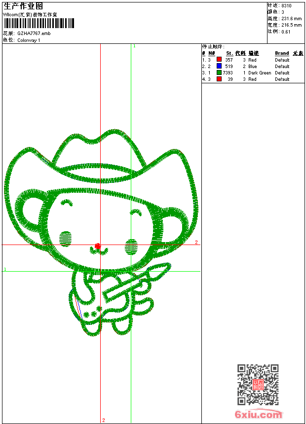 - 版带文件需绣花软件方可打开,可配色打印导出各种格式或直接上机绣。如无绣花软件可下载1:1模拟效果图。