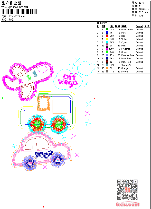 汽车飞机贴布童 emb花版参数: 大小:43.50 KB / 尺寸:90*109[毫米] / 针数:5275针 / 线色:14 / 格式:emb / 版本:9 版带文件需绣花软件方可打开,可配色打印导出各种格式或直接上机绣。如无绣花软件可下载1:1模拟效果图。 PNG图片信息:大小:0.1(MB) /图宽*高:340x413(像素) emb下载 1:1图下载 关闭 相关花版: 锁链状条花 后幅领花 曲线包针前下摆 波浪包针领花 三角针领 仿水溶肩满花 单针领花 弹吉他小孩人物 郁金香肩满花 简单下摆叶 似孔雀羽毛网布花边 心形眼睛猫咪 潜水员 镂空它它米领条花 乱针字母 蝴蝶花卉 波浪包针 蘑菇 牛四不像动物 单针圆点家纺 前幅下经典花朵 经典玫瑰花 蝴蝶 梯形后袋 经典传统肩满花 传统吉祥圆形花 龙章仔 圆点几何图案对称 似竹节包针 格子柳树叶