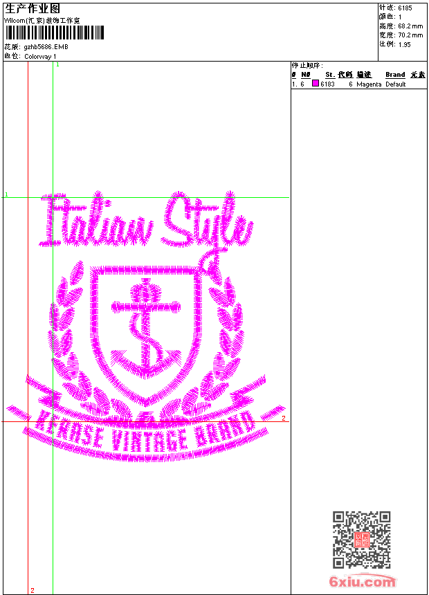 锚章仔 emb花版参数: 大小:55.50 KB / 尺寸:70*68[毫米] / 针数:6185针 / 线色:1 / 格式:emb / 版本:9 版带文件需绣花软件方可打开,可配色打印导出各种格式或直接上机绣。如无绣花软件可下载1:1模拟效果图。 PNG图片信息:大小:0.1(MB) /图宽*高:266x258(像素) emb下载 1:1图下载 关闭 相关花版: 抽象头饰 裙抽象 鹦鹉鸟 仿水溶下摆大裙花 蝴蝶 传统吉祥图案 简单花 单针圆形领前中 米奇 它它米小熊 包针带状分割 人物头像 花篮 单针花波浪包针下摆 字母贴布 对称包针叶子 曲线包针字母抽象 网状包针 条花 十字绣条 前幅抽象玫瑰花 传统吉祥分码前幅中复杂 圆点波浪下摆 简单花鸟 老虎抽象 经典下摆花 经典花 抽象简单花 Y形领 格子圆圈下摆