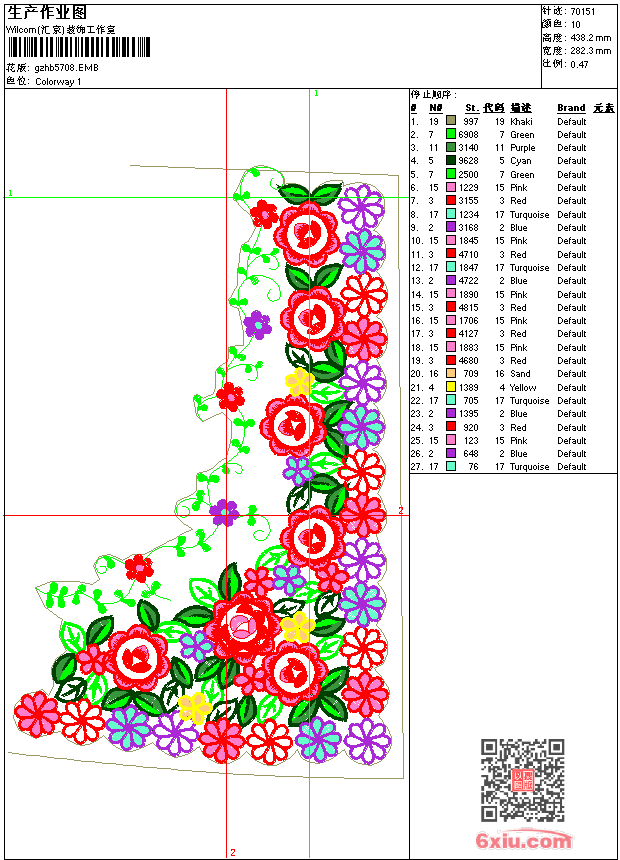 传统花 emb花版参数: 大小:594.00 KB / 尺寸:282*438[毫米] / 针数:70151针 / 线色:10 / 格式:emb / 版本:9 版带文件需绣花软件方可打开,可配色打印导出各种格式或直接上机绣。如无绣花软件可下载1:1模拟效果图。 PNG图片信息:大小:1.4(MB) /图宽*高:1068x1658(像素) emb下载 1:1图下载 关闭 相关花版: U形领条 抽象叶花 经典花 锚章仔 汽车 肩抽象 童花 抽象领花 抽象网布条花 抽象曲线 猫 马章仔 熊 点点条 8字形领 锚章仔 抽象头饰 裙抽象 鹦鹉鸟 仿水溶下摆大裙花 蝴蝶 传统吉祥图案 简单花 单针圆形领前中 米奇 它它米小熊 包针带状分割 人物头像 花篮 单针花波浪包针下摆