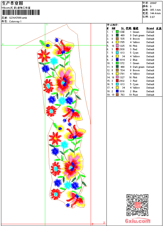 经典肩满花传统 emb花版参数: 大小:234.50 KB / 尺寸:144*385[毫米] / 针数:20947针 / 线色:9 / 格式:emb / 版本:7 版带文件需绣花软件方可打开,可配色打印导出各种格式或直接上机绣。如无绣花软件可下载1:1模拟效果图。 PNG图片信息:大小:0.5(MB) /图宽*高:547x1457(像素) emb下载 1:1图下载 关闭 相关花版: 抽象花 三角针领前中 小雪人卡通 网格单针曲线包针 简单领条 圆点米奇 单针圆形领前中 经典下摆大花裙 它它米圆形字母 下摆包针大花裙 抽象仿水溶领 半圆曲线抽象 袋鼠先生卡通 简单圆形花 后幅简单花 十字绣裙抽象 简单花 多色水溶领花 肩花 经典花 猫头鹰 抽象衣角条 章仔 点条 简单花 人头 抽象领 米奇 点点条摆 简单花