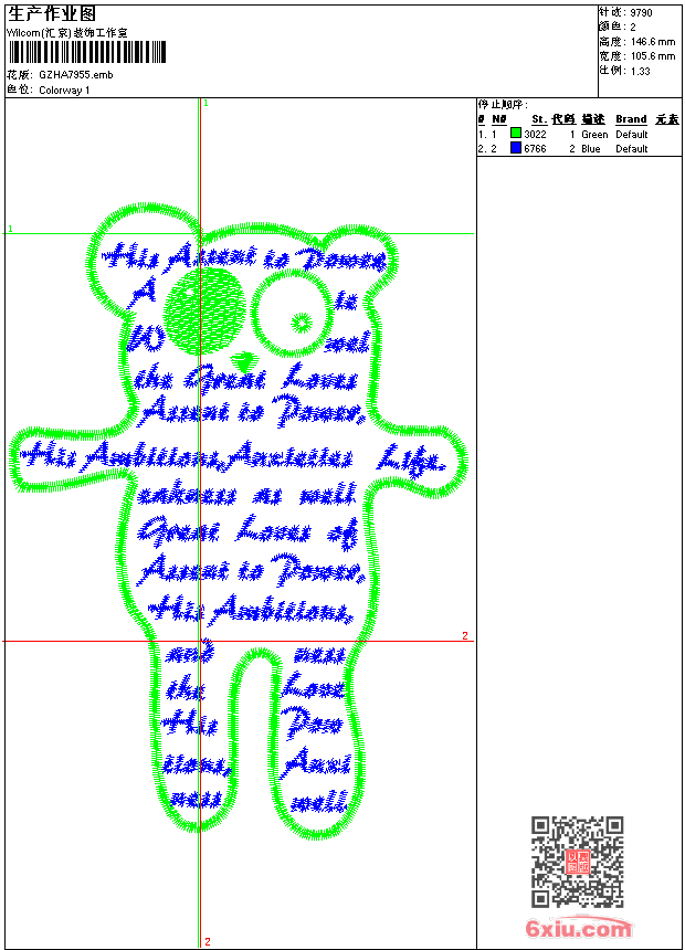 熊字母 emb花版参数: 大小:120.50 KB / 尺寸:106*147[毫米] / 针数:9790针 / 线色:2 / 格式:emb / 版本:9 版带文件需绣花软件方可打开,可配色打印导出各种格式或直接上机绣。如无绣花软件可下载1:1模拟效果图。 PNG图片信息:大小:0.2(MB) /图宽*高:400x555(像素) emb下载 1:1图下载 关闭 相关花版: 贴布花 经典传统花 传统梅花前幅 鹰翅膀骷髅头 曲线抽象 曲线包针领花 单针曲线叶抽象 小女孩拿气球 字母猫 菱形前中经典花 简单花 传统吉祥花 菊花 梯形三角虚线下摆 字母贴布花 仿水溶对称领中东 网格单针鹰抽象 简单花 曲线包针花 猫咪 梅花龙凤传统 皇冠鹰章仔 简单花 马章仔ferrari 五角星花朵童 绳绣领 经典大花 多色水溶领花 几何图案领 凤凰古典传统花