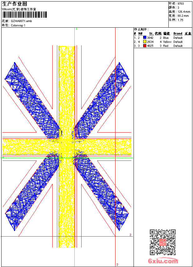 米字 emb花版参数: 大小:35.00 KB / 尺寸:80*126[毫米] / 针数:9703针 / 线色:3 / 格式:emb / 版本:9 版带文件需绣花软件方可打开,可配色打印导出各种格式或直接上机绣。如无绣花软件可下载1:1模拟效果图。 PNG图片信息:大小:0.2(MB) /图宽*高:304x478(像素) emb下载 1:1图下载 关闭 相关花版: 几何领花 小狗字母 皇冠字母 小女孩后袋 艺术字母 简单花 单针领 传统牡丹花前幅衣角满 亮片 几何圆点瓜状叶 叶子 太阳 跑车 包针叶子 鞋袜后袋 蝴蝶小人 字母 长颈鹿 音符 小熊字母 传统经典对称花 十字针迹牡丹花 曲线包针花衣角 插针花抽象 圆点小花前幅 单针花抽象 瓜状叶包针小花 火焰状包针小花 单针叶子字母 网格镂空叶子它它米花 鹰章仔