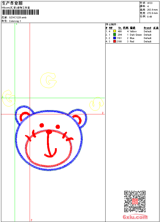 熊卡通贴布 emb花版参数: 大小:47.00 KB / 尺寸:273*264[毫米] / 针数:4133针 / 线色:4 / 格式:emb / 版本:9 版带文件需绣花软件方可打开,可配色打印导出各种格式或直接上机绣。如无绣花软件可下载1:1模拟效果图。 PNG图片信息:大小:0.2(MB) /图宽*高:1032x998(像素) emb下载 1:1图下载 关闭 相关花版: 抽象森林 兔 简单花 裙花摆 老虎贴布 章仔 单针领花 猫卡通贴布 熊卡通贴布 抽象曲线 领抽象 抽象叶 鼠卡通 镂空抽象领 蝴蝶 抽象花 花抽象条 裙边条 水溶肩花 简单曲线 锁针圆满绣 抽象曲线衣 水溶领牡丹花 简单花衣角 抽象家纺花 熊卡通贴布 小花条领 简单曲线 领 简单花
