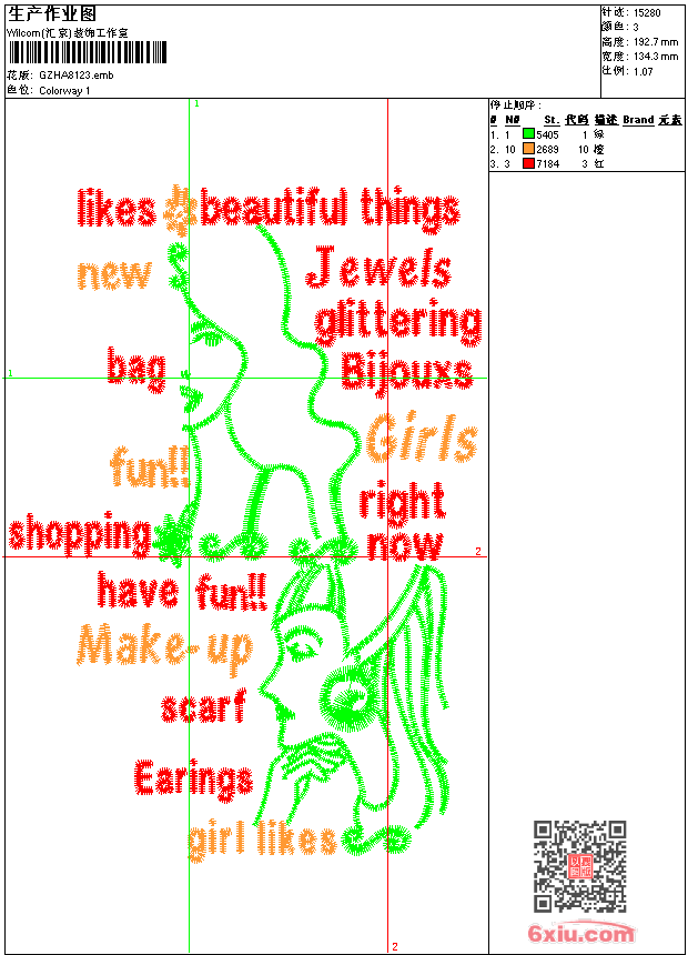 美女 emb花版参数: 大小:150.00 KB / 尺寸:134*193[毫米] / 针数:15280针 / 线色:3 / 格式:emb / 版本:9 版带文件需绣花软件方可打开,可配色打印导出各种格式或直接上机绣。如无绣花软件可下载1:1模拟效果图。 PNG图片信息:大小:0.3(MB) /图宽*高:508x729(像素) emb下载 1:1图下载 关闭 相关花版: 领 new york 几何同心圆 小刺猬骑单车 多色水溶花 网格曲线包针下摆裙 单针E字形花 字母 曲线包针领 菱形包针前领中 蝴蝶字母 简单花草 抽象花贴布 皇冠字母骷髅头章仔 童装 U形单针领 高跟鞋 瓜状简单花 曲线河流包针前幅 简单花草 豆芽状包针前幅接花 曲线单针抽象花 孔雀羽毛衣下角分码 简单花 瓜状锁链前幅中 花朵贴布匹绣 玫瑰花前幅 多色水溶条码 圆点星星太阳花 贴布花朵