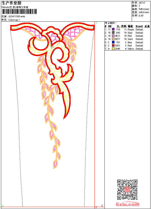 裤脚花 emb花版参数: 大小:179.50 KB / 尺寸:249*545[毫米] / 针数:26717针 / 线色:7 / 格式:emb / 版本:9 版带文件需绣花软件方可打开,可配色打印导出各种格式或直接上机绣。如无绣花软件可下载1:1模拟效果图。 PNG图片信息:大小:0.7(MB) /图宽*高:941x2062(像素) emb下载 1:1图下载 收藏本图 关闭 相关花版: 玫瑰花 抽象花 经典花 网格花 老虎头 花 绳状抽象花 经典牡丹花 简单花前中 单针花 小丑大象卡通 连衣裙花 皇冠男 尾巴草 花仙子卡通 简单花领 男裤袋 骑马保罗 单针牡丹花 彩虹卡通 青蛙王子公主卡通 水溶花朵 中国结喜庆 传统唐装牡丹花 珠状裤袋 女沙发 男裤袋 童花卡通 男狮子 几何方块领