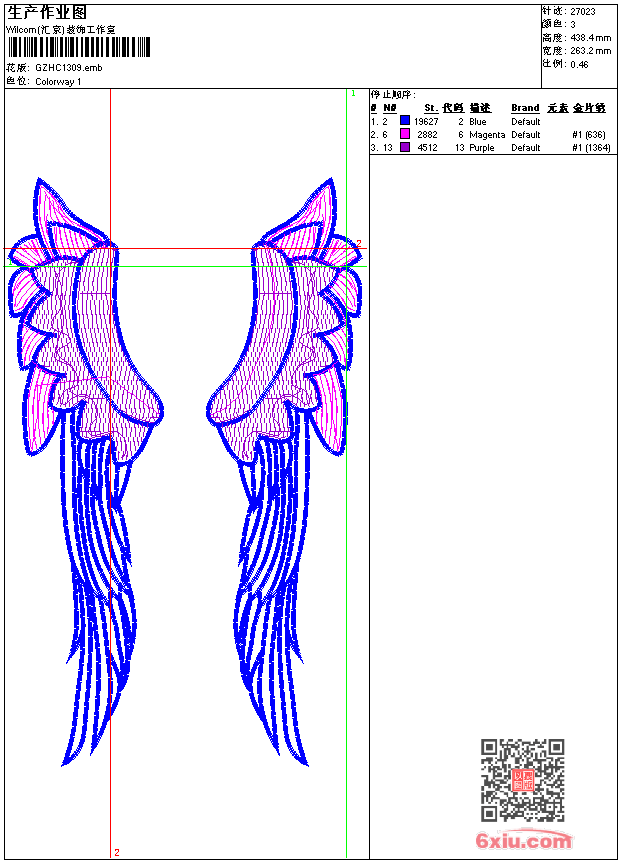 亮片 珠片翅膀 emb花版参数: 大小:307.50 KB / 尺寸:263*438[毫米] / 针数:27023针 / 线色:3 / 格式:emb / 版本:e1.5 版带文件需绣花软件方可打开,可配色打印导出各种格式或直接上机绣。如无绣花软件可下载1:1模拟效果图。 PNG图片信息:大小:0.5(MB) /图宽*高:996x1659(像素) emb下载 1:1图下载 收藏本图 关闭 相关花版: 仿水溶花领 裙花摆 狮子卡通 裤脚花 玫瑰花 抽象花 经典花 网格花 老虎头 花 绳状抽象花 经典牡丹花 简单花前中 单针花 小丑大象卡通 连衣裙花 皇冠男 尾巴草 花仙子卡通 简单花领 男裤袋 骑马保罗 单针牡丹花 彩虹卡通 青蛙王子公主卡通 水溶花朵 中国结喜庆 传统唐装牡丹花 珠状裤袋 女沙发