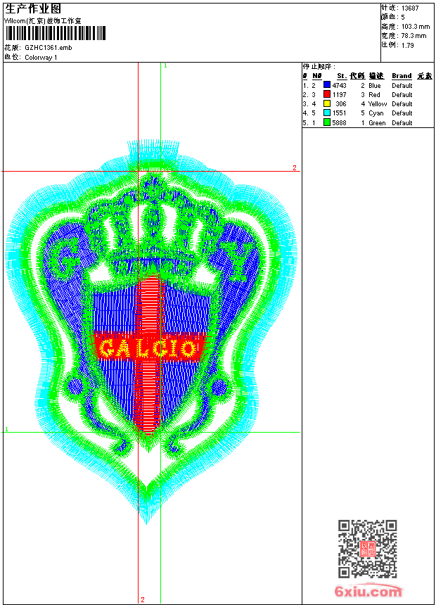 皇冠章仔 emb花版参数: 大小:93.50 KB / 尺寸:78*103[毫米] / 针数:13687针 / 线色:5 / 格式:emb / 版本:9 版带文件需绣花软件方可打开,可配色打印导出各种格式或直接上机绣。如无绣花软件可下载1:1模拟效果图。 PNG图片信息:大小:0.2(MB) /图宽*高:297x391(像素) emb下载 1:1图下载 关闭 相关花版: 贴布领花 肩花 吊带领花 单针翅膀 狮子鹰章仔 传统吉祥牡丹花 亮片 下摆珠片大裙花复杂 熊卡通贴布 简单对称花 下摆大裙花 下摆波浪小花 圆形吉祥皇冠花 心形 曲线水滴状包针 曲线包针领 简单花 火鸟 圆圈齿轮下摆大裙 简单花朵叶子 卡通熊贴布 豆芽花 单针花 女孩后袋 飞马 熊卡通 简单花 瓜状叶领前中 传统吉祥老虎头抽象 锁链针小花 狮子章仔