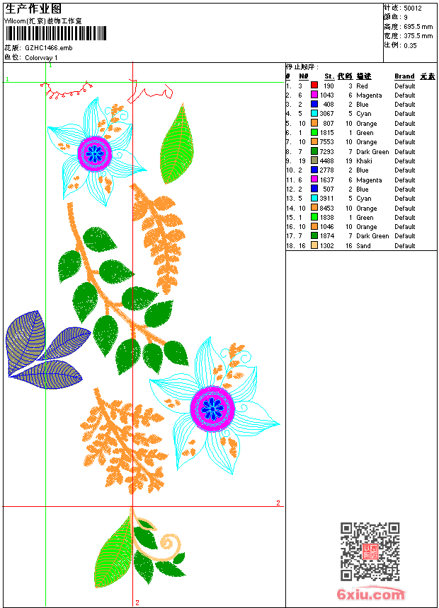 家纺大花 emb花版参数: 大小:241.50 KB / 尺寸:375*696[毫米] / 针数:50012针 / 线色:9 / 格式:emb / 版本:9 版带文件需绣花软件方可打开,可配色打印导出各种格式或直接上机绣。如无绣花软件可下载1:1模拟效果图。 PNG图片信息:大小:2.0(MB) /图宽*高:1421x2631(像素) emb下载 1:1图下载 收藏本图 关闭 相关花版: 章仔 领 条状花 章仔 章仔 领 熊字母 尾巴抽象花裙 简单条 章仔 经典叶 抽象曲线条 花衣 童装小花 蝴蝶 美女头像 经典花朵 小木马贴布童 单针领 皇冠 威尼熊 简单似蝴蝶花 小男孩 单针菱形包针条 曲线包针对称花 亮片 自行车珠片 弯条裙衣边 复杂古典裙边 镂空方条 抽象裤