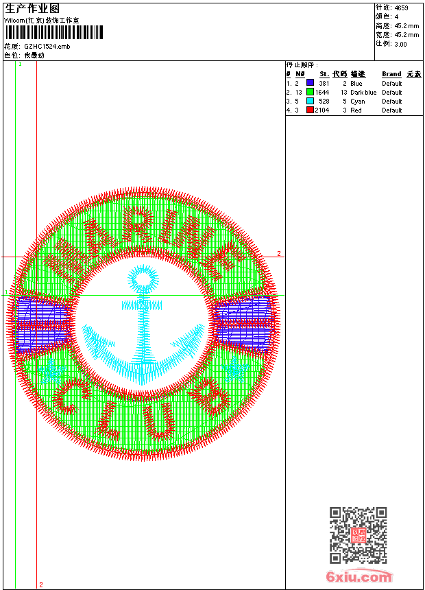 锚章仔 emb花版参数: 大小:43.50 KB / 尺寸:45*45[毫米] / 针数:4659针 / 线色:4 / 格式:emb / 版本:9 版带文件需绣花软件方可打开,可配色打印导出各种格式或直接上机绣。如无绣花软件可下载1:1模拟效果图。 PNG图片信息:大小:0.1(MB) /图宽*高:171x171(像素) emb下载 1:1图下载 关闭 相关花版: 下摆大裙花 简单花 曲线包针花 皇冠章仔 简单花圆 三角形领 圆形吉祥花 仿水溶领花 波浪包针花下摆 兰花下摆 经典下摆菊花大裙 鹰章仔 鹰翅膀皇冠 简单花 简单花条 鹰翅膀 字母高跟鞋 圆点小花骑中满 简单花后幅 字母章仔 老马识途卡通 曲线包针袖子 锁链针 对色水溶对称领 美女抽象 鹰章仔 下摆大裙花 十字架 瓜状叶 三角针领