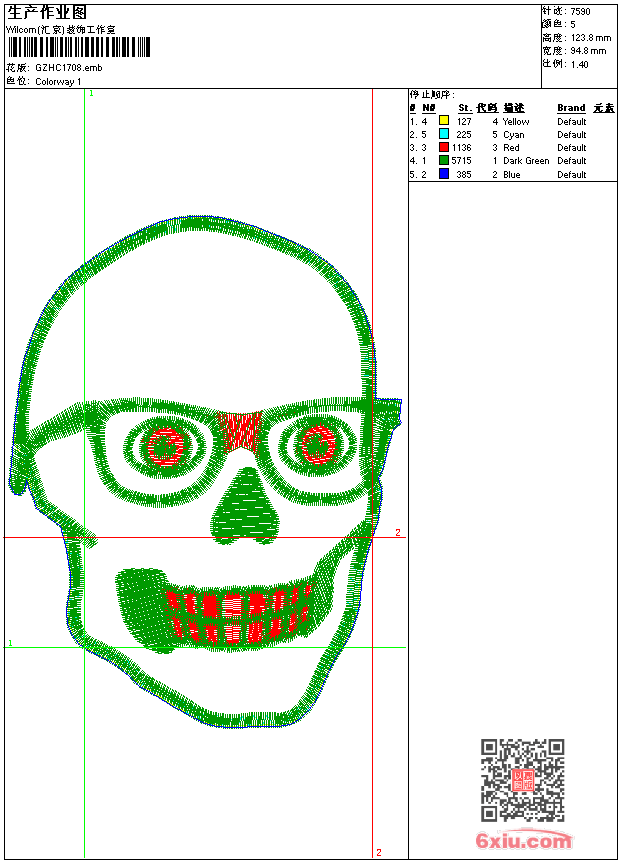 骷髅 emb花版参数: 大小:55.50 KB / 尺寸:95*124[毫米] / 针数:7590针 / 线色:5 / 格式:emb / 版本:e1.5 版带文件需绣花软件方可打开,可配色打印导出各种格式或直接上机绣。如无绣花软件可下载1:1模拟效果图。 PNG图片信息:大小:0.1(MB) /图宽*高:359x469(像素) emb下载 1:1图下载 关闭 相关花版: 网布花 鞋 领抽象 章仔 章仔 章仔 领 抽象传统吉祥曲线 男抽象曲线 章仔 鹅动物 裙边花 几何肩 龙 抽象符号 贴布花 领 裙花纱 美女 裙网布花抽象 传统小领花 骷髅裤袋 家纺花 三角针字母 仿水溶领 卡通熊 抽象花贴布 高跟鞋 十字绣 裙摆