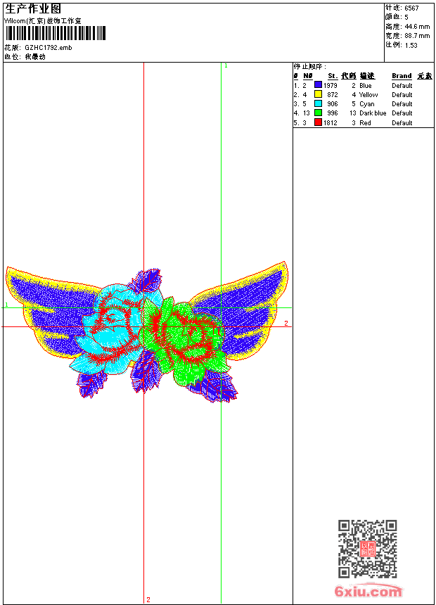 章仔 emb花版参数: 大小:56.50 KB / 尺寸:89*45[毫米] / 针数:6567针 / 线色:5 / 格式:emb / 版本:9 版带文件需绣花软件方可打开,可配色打印导出各种格式或直接上机绣。如无绣花软件可下载1:1模拟效果图。 PNG图片信息:大小:0.1(MB) /图宽*高:336x169(像素) emb下载 1:1图下载 收藏本图 关闭 相关花版: 章仔 章仔 跳舞女 章仔 老虎头 章仔 鹰骷髅男 章仔 章仔 章仔 骷髅裤袋 章仔 抽象男曲线 烫花 贴花水溶 骑马保罗 贴花水溶 章仔 骷髅 章仔 章仔 章仔 鹰 章仔 贴花水溶 章仔 章仔 章仔 章仔 章仔