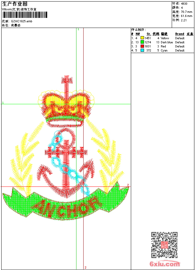 章仔 emb花版参数: 大小:51.00 KB / 尺寸:62*71[毫米] / 针数:4930针 / 线色:4 / 格式:emb / 版本:9 版带文件需绣花软件方可打开,可配色打印导出各种格式或直接上机绣。如无绣花软件可下载1:1模拟效果图。 PNG图片信息:大小:0.1(MB) /图宽*高:233x268(像素) emb下载 1:1图下载 关闭 相关花版: 贴花 贴花 烫花水溶 字母男 骷髅 章仔 章仔 章仔 章仔 老虎头 字母男 章仔 骷髅 章仔 章仔 章仔 亮片 帽子珠片 贴花裙衣 章仔 章仔 简单小花 碎石树叶 字母男 烫领水溶 抽象男曲线 骷髅 字母男 章仔 章仔 裤脚花