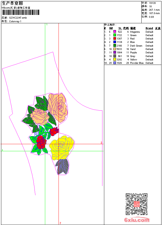 玫瑰花 emb花版参数: 大小:242.00 KB / 尺寸:187*267[毫米] / 针数:19139针 / 线色:10 / 格式:emb / 版本:7 版带文件需绣花软件方可打开,可配色打印导出各种格式或直接上机绣。如无绣花软件可下载1:1模拟效果图。 PNG图片信息:大小:0.3(MB) /图宽*高:708x1011(像素) emb下载 1:1图下载 关闭 相关花版: 网布领水溶 水溶领 十字绣花 男抽象章 龙卷风抽象牡丹花 小叶条 水溶领 经典小花 肩膀曲线 三角针领 领花简单 仙桃花 水溶朵花 曲线花前中 衣花 水溶肩 水溶假领 蚊香状花 水滴条码 大牡丹花 水溶条 蝴蝶大牡丹花 玫瑰花字母 水溶假领 抽象曲线 水溶领 水溶朵花 水溶条码 上衣襟 领