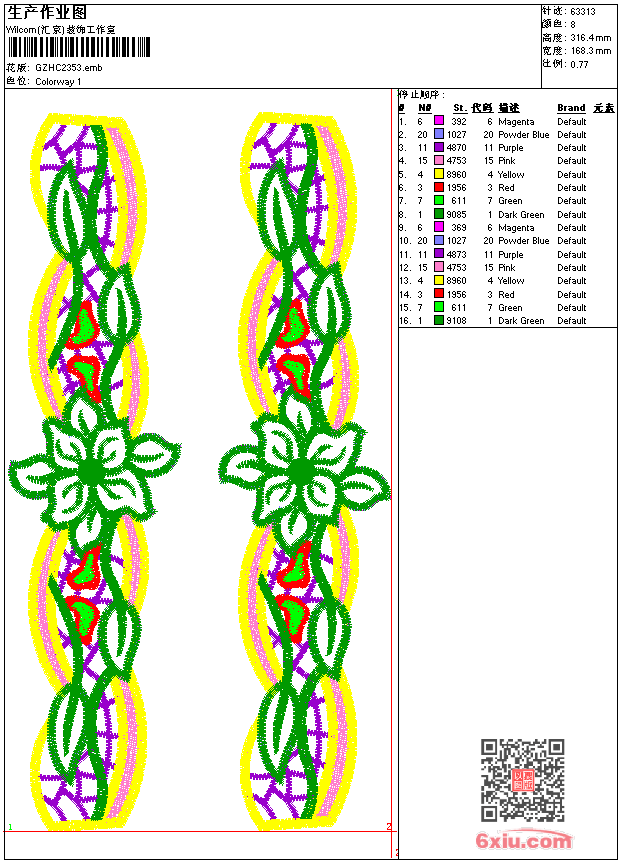水溶条码 emb花版参数: 大小:376.50 KB / 尺寸:168*316[毫米] / 针数:63313针 / 线色:8 / 格式:emb / 版本:9 版带文件需绣花软件方可打开,可配色打印导出各种格式或直接上机绣。如无绣花软件可下载1:1模拟效果图。 PNG图片信息:大小:0.8(MB) /图宽*高:637x1197(像素) emb下载 1:1图下载 关闭 相关花版: 水溶条码 假领曲线 简单曲线 水溶领 水溶领 镜花字母 尾巴曲线 男章仔 水溶领 螺纹花 亮片 珠片小花 翅膀 衣角 水溶领 抽象吉祥衣 裙衣大花 水溶领 抽象点 条码花 芦苇草 水溶蚊香朵花 网布大花 水溶花 插针花 领 领 三角针裙 水溶领 抽象仿剪纸曲线花 水溶朵花