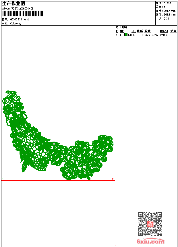 水溶网布 emb花版参数: 大小:231.00 KB / 尺寸:350*281[毫米] / 针数:51695针 / 线色:1 / 格式:emb / 版本:9 版带文件需绣花软件方可打开,可配色打印导出各种格式或直接上机绣。如无绣花软件可下载1:1模拟效果图。 PNG图片信息:大小:1.2(MB) /图宽*高:1323x1065(像素) emb下载 1:1图下载 关闭 相关花版: 水溶网布 骷髅 大牡丹花 水溶条码 水溶领 花边摆 水溶条码 水溶条码 假领曲线 简单曲线 水溶领 水溶领 镜花字母 尾巴曲线 男章仔 水溶领 螺纹花 亮片 珠片小花 翅膀 衣角 水溶领 抽象吉祥衣 裙衣大花 水溶领 抽象点 条码花 芦苇草 水溶蚊香朵花 网布大花 水溶花
