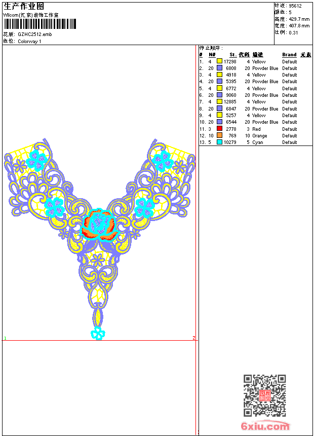 水溶领 emb花版参数: 大小:672.00 KB / 尺寸:408*430[毫米] / 针数:95612针 / 线色:5 / 格式:emb / 版本:9 版带文件需绣花软件方可打开,可配色打印导出各种格式或直接上机绣。如无绣花软件可下载1:1模拟效果图。 PNG图片信息:大小:1.7(MB) /图宽*高:1543x1626(像素) emb下载 1:1图下载 关闭 相关花版: 窗帘 水溶领 水溶朵花 锚章仔 绳绣花 匹绣 抽象曲线边 窗帘 抽象衣前中 窗帘 裤花 亮片 窗帘 窗帘 单边衣襟 几何裙摆 亮片 窗帘 水深朵花 窗帘 水深朵花 U领前中童 童花 后背假领 传统领 水深朵花 多色水溶领 镂空裙摆条 多色水溶领 窗帘 窗帘 三角针领
