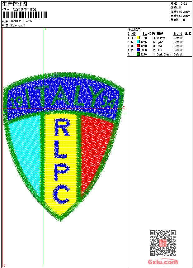章仔 emb花版参数: 大小:44.00 KB / 尺寸:68*83[毫米] / 针数:10852针 / 线色:5 / 格式:emb / 版本:9 版带文件需绣花软件方可打开,可配色打印导出各种格式或直接上机绣。如无绣花软件可下载1:1模拟效果图。 PNG图片信息:大小:0.1(MB) /图宽*高:259x315(像素) emb下载 1:1图下载 关闭 相关花版: 章仔 几何曲线 海绵宝宝卡通 领前中 领花 窗帘 美女 骷髅 章仔字母 茶杯 仿手绣抽象花 家纺大花 童装花型 曲线家纺 裤花 章仔 叶匹绣 花星点条码 翅膀状曲线 史努比卡通 领 小树林 弯条 激光大花 亮片 经典花 小鸟 曲线花 家纺大花 汽车贴布卡通 菱形条