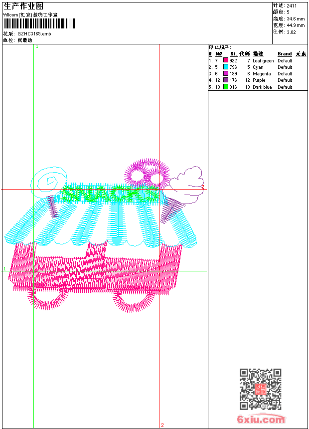 冰激凌车 emb花版参数: 大小:35.00 KB / 尺寸:45*35[毫米] / 针数:2411针 / 线色:5 / 格式:emb / 版本:9 版带文件需绣花软件方可打开,可配色打印导出各种格式或直接上机绣。如无绣花软件可下载1:1模拟效果图。 PNG图片信息:大小:0.1(MB) /图宽*高:170x131(像素) emb下载 1:1图下载 关闭 相关花版: KITTY 烫条花 烫花领 米奇 章仔 经典花 卡通BETTY 鹰 章仔 羽毛肩 章仔 章仔 窗帘 满绣衣裙 骷髅 窗帘大花 亮片 珠片窗帘 领 王冠 龙 章仔 公车马车童话卡通 汽车章仔 水溶领 章仔 抽象上衣花 章仔 锚章仔 简笔画人物字母 简单小花