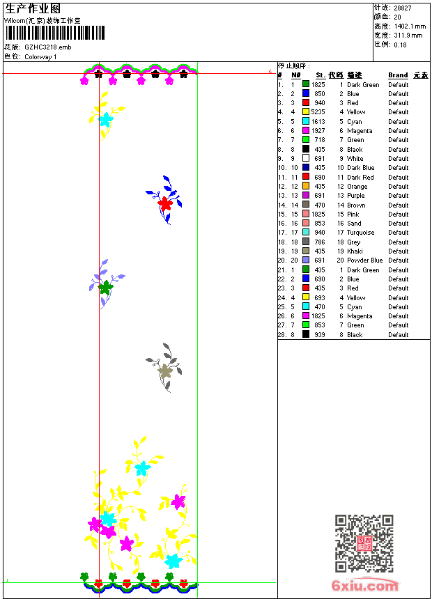 窗帘 emb花版参数: 大小:149.50 KB / 尺寸:312*1402[毫米] / 针数:28827针 / 线色:20 / 格式:emb / 版本:9 版带文件需绣花软件方可打开,可配色打印导出各种格式或直接上机绣。如无绣花软件可下载1:1模拟效果图。 PNG图片信息:大小:1.1(MB) /图宽*高:1180x5304(像素) emb下载 1:1图下载 关闭 相关花版: 骷髅 章仔 章仔喷火龙 章仔 地球章仔 章仔 水溶肩 亮片 珠版裤花 章仔 水溶领 章仔鹰 章仔 领 领 窗帘 鹰章仔 字母 水溶领 旗帜 章仔 章仔 裤袋lola 领 spain章仔 鹰章仔 美女头像 锚章仔 简洁小花 简洁小花 章仔