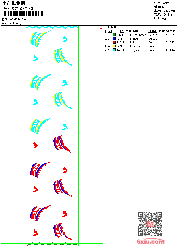 亮片 窗帘 emb花版参数: 大小:106.50 KB / 尺寸:327*1350[毫米] / 针数:34597针 / 线色:5 / 格式:emb / 版本:9 版带文件需绣花软件方可打开,可配色打印导出各种格式或直接上机绣。如无绣花软件可下载1:1模拟效果图。 PNG图片信息:大小:1.3(MB) /图宽*高:1236x5106(像素) emb下载 1:1图下载 收藏本图 关闭 相关花版: 王冠鸟 骷髅兔 匹绣雕孔 抽象几何 绳绣衣裙 领 裙衣条边 经典花 蝴蝶 亮片 珠片肩 锚章仔 禾穗 骑马武士 翅膀地球 骷髅 王冠 传统大花 抽象曲线 章仔 玫瑰花 窗帘 大鸟章仔 羽毛曲线 亮片 珠片花 电吉他 卡通火车 牛头字母 骷髅绅士 锚章仔 男章仔