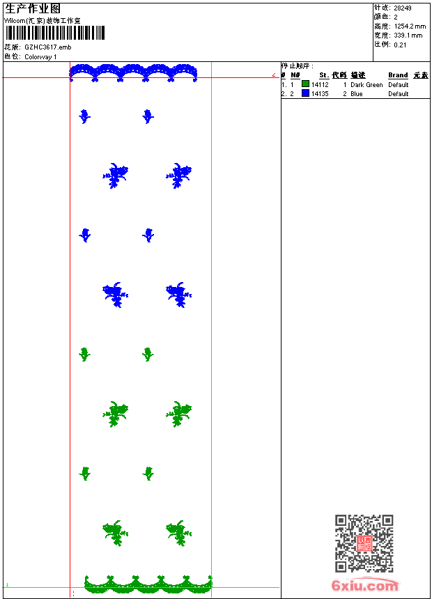 窗帘 emb花版参数: 大小:168.00 KB / 尺寸:339*1254[毫米] / 针数:28249针 / 线色:2 / 格式:emb / 版本:9 版带文件需绣花软件方可打开,可配色打印导出各种格式或直接上机绣。如无绣花软件可下载1:1模拟效果图。 PNG图片信息:大小:0.8(MB) /图宽*高:1283x4744(像素) emb下载 1:1图下载 关闭 相关花版: 领 字母 骷髅 美女头像 领 假领 抽象曲线蝴蝶 手提包 传统玫瑰花 鹰章仔 经典大花 领 舵 几何裙边 对称曲线 对称曲线 裤袋字母 小圈图案 经典蝴蝶戏花 绳状曲线 鸟草图 石油钻井 花衣 锚 熊猫 字母 领 亮片 珠片花 经典花 家纺大花边