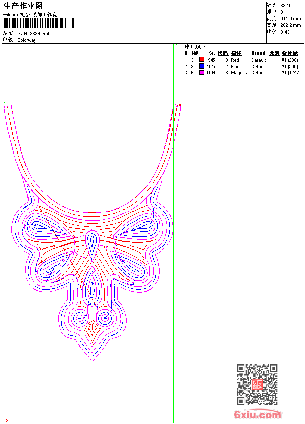 亮片 珠片领 emb花版参数: 大小:271.00 KB / 尺寸:282*411[毫米] / 针数:8221针 / 线色:3 / 格式:emb / 版本:e1.5 版带文件需绣花软件方可打开,可配色打印导出各种格式或直接上机绣。如无绣花软件可下载1:1模拟效果图。 PNG图片信息:大小:0.6(MB) /图宽*高:1068x1555(像素) emb下载 1:1图下载 关闭 相关花版: 假领 大方花形 章仔 毛巾绣 亮片 珠片花 美女头像 叶曲线 大方裙边花 裙抽象圆圈 抽象曲线 经典花 窗帘 领 字母 骷髅 美女头像 领 假领 抽象曲线蝴蝶 手提包 传统玫瑰花 鹰章仔 经典大花 领 舵 几何裙边 对称曲线 对称曲线 裤袋字母 小圈图案
