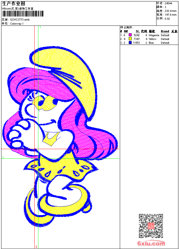 蓝精灵蓝妹妹卡通 emb花版参数: 大小:88.50 KB / 尺寸:148*230[毫米] / 针数:24544针 / 线色:3 / 格式:emb / 版本:9 版带文件需绣花软件方可打开,可配色打印导出各种格式或直接上机绣。如无绣花软件可下载1:1模拟效果图。 PNG图片信息:大小:0.5(MB) /图宽*高:559x872(像素) emb下载 1:1图下载 关闭 相关花版: 骷髅 骷髅 章仔 童话公主马车 领 领 抽象曲线 亮片 珠片领 锚章仔 领 抽象曲线 领 章仔police 猫裤袋 熊贴布 毛巾绣 章仔 经典花领 领 抽象曲线 衣前中 熊卡通 蝴蝶 亮片 珠片蝴蝶 优美曲线 章仔 抽象裙衣边 帽子美女 水溶朵花 三只水鸟