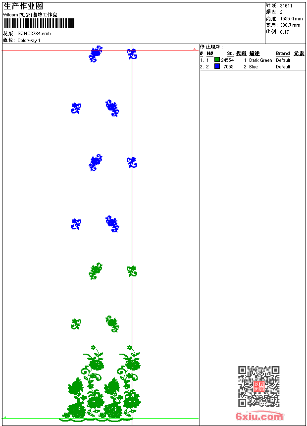 窗帘 emb花版参数: 大小:144.00 KB / 尺寸:337*1555[毫米] / 针数:31611针 / 线色:2 / 格式:emb / 版本:9 版带文件需绣花软件方可打开,可配色打印导出各种格式或直接上机绣。如无绣花软件可下载1:1模拟效果图。 PNG图片信息:大小:1.4(MB) /图宽*高:1274x5884(像素) emb下载 1:1图下载 关闭 相关花版: 章仔 简洁花 风衣曲线 线条章仔 章仔 复杂裙大花边 蓝精灵蓝妹妹卡通 骷髅 骷髅 章仔 童话公主马车 领 领 抽象曲线 亮片 珠片领 锚章仔 领 抽象曲线 领 章仔police 猫裤袋 熊贴布 毛巾绣 章仔 经典花领 领 抽象曲线 衣前中 熊卡通 蝴蝶