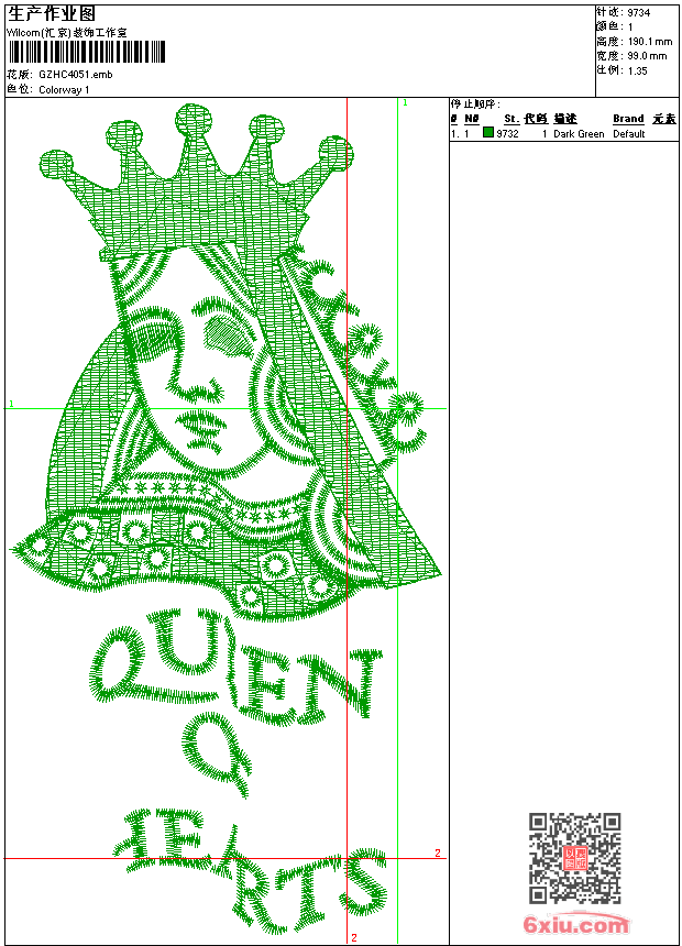 扑克王后 emb花版参数: 大小:59.00 KB / 尺寸:99*190[毫米] / 针数:9734针 / 线色:1 / 格式:emb / 版本:9 版带文件需绣花软件方可打开,可配色打印导出各种格式或直接上机绣。如无绣花软件可下载1:1模拟效果图。 PNG图片信息:大小:0.2(MB) /图宽*高:375x720(像素) emb下载 1:1图下载 关闭 相关花版: 风车条边 领 花条裙摆 领 传统吉祥花 眼镜状曲线 胸肩直线 骷髅战士 面条曲线 风衣后背章仔 古典花型中老年 简洁花 简洁花 衣襟 裙边 熊卡通 页边条 王冠 领 对称几何 条花对称 曲线条 曲线条 水溶假领 骷髅 米奇狗 曲线花 裤袋花 胸花 竖琴曲线