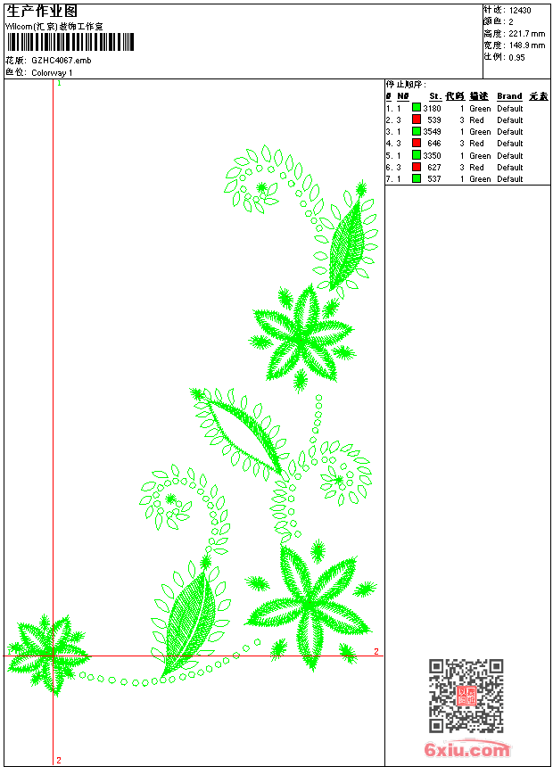经典花型 emb花版参数: 大小:122.50 KB / 尺寸:149*222[毫米] / 针数:12430针 / 线色:2 / 格式:emb / 版本:9 版带文件需绣花软件方可打开,可配色打印导出各种格式或直接上机绣。如无绣花软件可下载1:1模拟效果图。 PNG图片信息:大小:0.2(MB) /图宽*高:564x839(像素) emb下载 1:1图下载 关闭 相关花版: 经典花型 章仔 经典花型 经典花型 领 亮片 珠片裙花 雕孔 机器猫 卡通人物 亮片 领 亮片 珠片胸领 简洁花 领 扑克王后 风车条边 领 花条裙摆 领 传统吉祥花 眼镜状曲线 胸肩直线 骷髅战士 面条曲线 风衣后背章仔 古典花型中老年 简洁花 简洁花 衣襟 裙边 熊卡通
