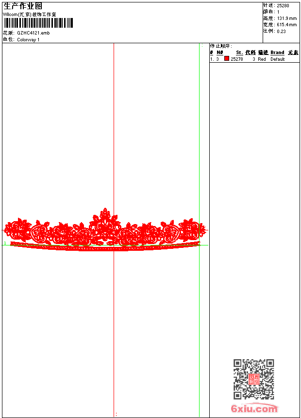 裙衣边摆 emb花版参数: 大小:333.50 KB / 尺寸:615*132[毫米] / 针数:25280针 / 线色:1 / 格式:emb / 版本:e1.5 版带文件需绣花软件方可打开,可配色打印导出各种格式或直接上机绣。如无绣花软件可下载1:1模拟效果图。 PNG图片信息:大小:1.1(MB) /图宽*高:2328x499(像素) emb下载 1:1图下载 关闭 相关花版: 艺术字树 童装卡通花 网布朵花 唐装吉祥牡丹花 唐装花 经典花 领 卡通毛巾绣 经典花叶 经典花叶 经典花叶 抽象曲线 花排列 鹰 小花裙边 rainbow 抽象多角形 领 猫咪 酒杯 镂空曲线 窗帘 匹绣 领 简笔花 花领 小玫瑰排列 骷髅 镂空排列 经典大花