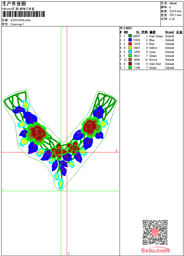领 emb花版参数: 大小:261.50 KB / 尺寸:371*325[毫米] / 针数:49640针 / 线色:8 / 格式:emb / 版本:9 版带文件需绣花软件方可打开,可配色打印导出各种格式或直接上机绣。如无绣花软件可下载1:1模拟效果图。 PNG图片信息:大小:1.2(MB) /图宽*高:1403x1228(像素) emb下载 1:1图下载 关闭 相关花版: 内衣花 水溶领 抽象圆曲线摆 裙窗帘大花 简单鞋曲线 鞋领花 领 鞋裤袋小花 十字绣花 领 裙抽象对称 水溶领 圆形环花 十字绣条 家纺花 领 水溶朵花 鞋曲线 鞋花 简笔花 简笔花 皇冠 领 水溶领 蝌蚪花形 裙边曲线 窗帘 鸳鸯 牵牛花 对称曲线