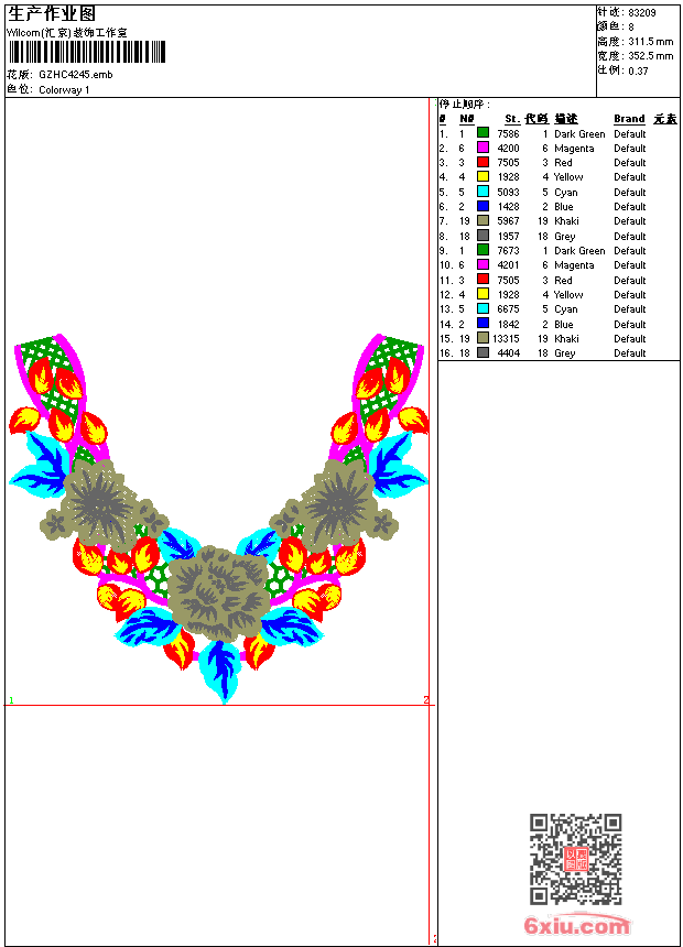 领 emb花版参数: 大小:412.50 KB / 尺寸:353*312[毫米] / 针数:83209针 / 线色:8 / 格式:emb / 版本:9 版带文件需绣花软件方可打开,可配色打印导出各种格式或直接上机绣。如无绣花软件可下载1:1模拟效果图。 PNG图片信息:大小:1.4(MB) /图宽*高:1334x1179(像素) emb下载 1:1图下载 关闭 相关花版: 龙 骑马polo 简洁玫瑰花 领 字母 领 抽象圆角 亮片 珠片章仔 章仔 简单长条花 T恤曲线 窗帘 肩膀半胸荷花 高尔夫球标 领 简洁花摆 T恤背绣 裙摆条 冲浪 裙衣下摆 领 简洁大朵花 小花朵条 胸圆圈 裙摆 经典花朵 领 卡通狗 胸花领 领